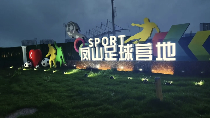 凤山足球营地位于海安城北核心区,规划总用地面积6.6万平方米,是海安首家标准化专业足球营地,也是该市2026年民生实事项目之一。营地拥有两座标准足球场,一座为符合国家标准的天然草主赛场,配备35个全自动喷灌喷头及休息室、淋浴房等附属设施;另一座为人工草坪训练场。此外,营地还配套建设两座网球场、两座篮球场及无人机培训基地。场地设置5200个观众座位,配备130平方米大屏幕和4盏35米高杆灯。