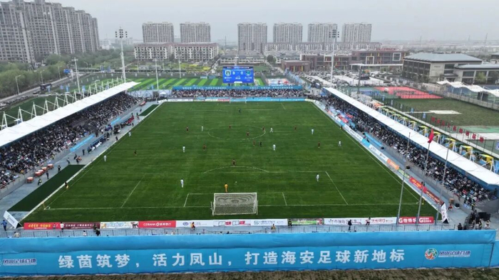 4月6日下午,海安市委书记谭真来到凤山足球营地,为海安博文高中足球队与南通支云俱乐部U19青训队开球;海安市市长赵男男宣布该营地正式启用。近5000名观众共同见证海安这座文体新地标的诞生。